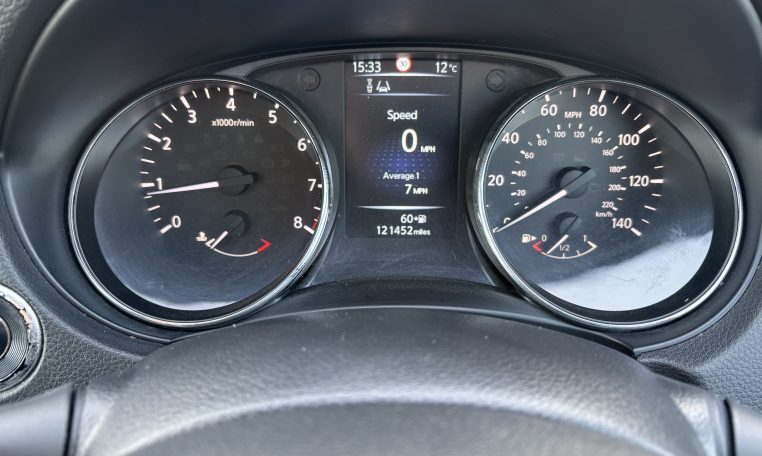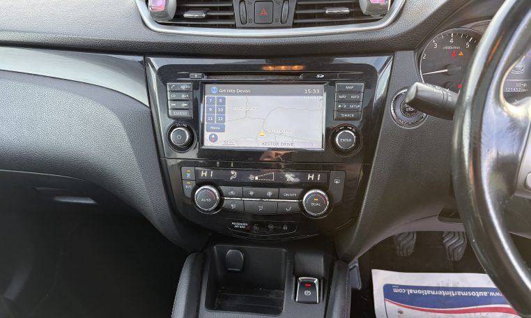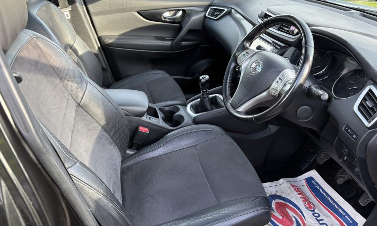 Nissan Qashqai 1.2 N-Vision Dig T 2017 SUV fitted with the following equipment: Air Conditioning, Alloy Wheels, Airbags, Auto Wipers/Lights, AM-FM Radio and CD Player, Cruise Control, Climate Control, DAB Digital Radio, Daytime Running Lights, Electric Windows, Electric Fold in Mirrors, Electric Heated Seats, Half Leather Interior, Multi-Functional Steering Wheel, NissanConnect Evo Touchscreen Navigation and Entertainment System, Nissan Anti Theft System Immobiliser, Panoramic Roof, Parking Sensors, Rear View Camera, Sat Nav, 5in TFT Coloured Screen. 121,000 miles with Service History. HPI Clear.
